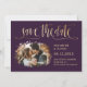 Modern purple and gold wedding photo save the date cards with an elegant script font. Easily personalize this photo card with your images and wedding details.