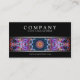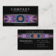 Stylish modern business card with a mostly black background. Between the silver colored lines the details of a purple flower mandala show, providing a nice pop of color, making this contact card stand out from the crowd. Click customize to have more control over font choices and the use of space for text.