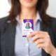 Create a professional and stylish ID badge for Nurse Practitioner. This customizable template features a modern purple design, perfect for hospitals, clinics, and healthcare facilities. Easily personalize with your photo, name, title (Nurse Practitioner NP), ID number, location, and more. Add a barcode to the back for enhanced security. The clean layout ensures all vital information is clearly displayed. This template is also easily adaptable for other healthcare professionals. Simply adjust the text fields to reflect your specific role and information.