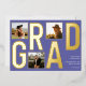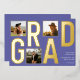 Celebrate your graduation with this modern photo typography graduation foil invitation. This sleek design features luxurious foil typography with the word "GRAD" prominently displayed. The invitation allows you to showcase three of your favorite photos on the front, creating a unique and personalized keepsake. Customize with your name, school, and graduation year on the back to share your achievement with friends and family. Perfect for high school or college graduates, this invitation beautifully captures your milestone moment with a stylish purple backdrop.