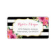 Modern Purple Red Pink Fuchsia Floral Black White Stripes Address Label.