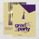 A minimalist purple tassel graphic and bold purple “grad party” headline on a gold background pairs with a clean photo layout and contemporary design for a stylish, editorial look. Fully customizable colors, text, and photo make it easy to create a unique invitation for your graduate.