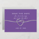Announce your upcoming wedding in style with this modern purple Save the Date card. Featuring a rich violet background, a romantic silver rope heart, chic calligraphy, and space for your custom photo, this elegant design perfectly sets the tone for a sophisticated celebration.