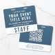 Elevate your event branding with this modern gradient access pass badge, designed for a clean, professional look with built-in QR functionality. Featuring a smooth blue color gradient and bold, easy-to-read typography, this customizable badge ensures quick identification while maintaining a polished, contemporary aesthetic. The layout highlights your event title, team member name, and role (e.g., staff, crew, vendor, VIP, etc.), with a prominent designation for instant recognition. The reverse side includes a large scannable QR code, perfect for digital check-ins, schedules, credentials, or contact sharing -- making this badge as functional as it is stylish. Ideal for large events, conferences, corporate events, trade shows, conventions, festivals, production crews, and VIP, staff, vendor, or media credentials.