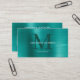 Modern Professional Brushed Metallic Teal Monogram Business Card
