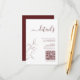 Introducing the Modern Burgundy Script Botanical Wedding Details Enclosure Card! This beautiful card is perfect for adding a personal touch to your wedding invitation suite. Designed to coordinate with wedding invitation in the same theme, the modern floral line art and elegant calligraphy make this card a stunning way to include all of the important information for your guests via QR Code link to your wedding website. Whether you're looking for a way to add a personal touch to your wedding details or just want a beautiful and modern way to include all the important information, the Modern Burgundy Script Botanical Wedding Details Enclosure Card is perfect for you! Contact designer for matching products. View collection here: https://www.zazzle.com/collections/modern_burgundy_script_botanical_wedding-119813557923348380 Copyright Elegant Invites, all rights reserved.