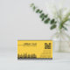 A business card template for taxi drivers and taxi service companies. The taxi driver business card is two sided and includes a QR Code which needs to be replaced with your own. If not needed, the QR Code can simply be removed. The design of the taxi driver business card shows the standard colors of a yellow cab, with the well known black and white checkers pattern at the bottom line. It also shows a city skyline which works perfectly with a city or urban Taxi service.