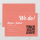 Modern QR Code Coral Pink 'We do!' Wedding Save the Date. Add your future wedding date, location, and wedding website info, as well as bride and groom names in elegant script lettering. Please message the designer if you need help making changes.