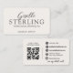 A clean, timeless business card featuring delicate script typography, a crisp ivory white background, and a modern QR code layout for effortless sharing. Ideal for makeup artists, stylists, consultants, and creatives seeking a fresh and polished brand presence.