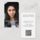 Modern business card featuring your photo overlayed with your name and profession in bold white typography. On the back, personalize with your contact information and input a website address to create a scannable QR Code connected to your website, portfolio, social media profile, or any other online platform that showcases your work, making it easy for customers and clients to explore your expertise.