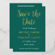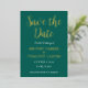 Modern, QR Code, photo, emerald green, gold foil Wedding Save the Date. You can personalize it with your own details, change the photo and add your own QR code.