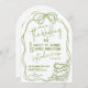 Modern quirky hand drawn bow GREEN retro wedding Invitation