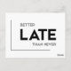MODERN quotes: better late than never Postcard
