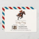 Modern Horse Race Derby Party Invitation with an illustration of a race horse with jockey and striped pattern on the back. All text elements can be changed so this design can be used for other events too: classy equestrian wedding invitation, horse birthday party, derby watch party, horse barn opening and more. Background, color of the illustration and text colors can be changed using the design tool!