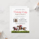 Modern Horse Race Derby Party Invitation with an illustration of a race horse with jockey and striped pattern on the back. All text elements can be changed so this design can be used for other events too: classy equestrian wedding invitation, horse birthday party, derby watch party, horse barn opening and more. Background, color of the illustration and text colors can be changed using the design tool!