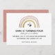 Plain white envelopes are included with paper invitations and will come to fit the invitation size you select. If you don’t need the envelopes, you may choose to not receive them by selecting the dropdown below "Envelopes" and choosing "None." If you’d like to have a design on your envelopes, you can browse all of these available envelopes to find the design that complements your Modern Rainbow Birthday Invitation.