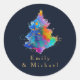 Modern Rainbow Christmas Tree Navy Blue Custom Classic Round Sticker