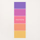 Modern Rainbow Colorblock Personalized Name Yoga Mat features a colorful rainbow color-block pattern in purple, pink, orange and yellow with your personalized name in the center. Personalized by editing the text in the text box provided. Designed by ©Evco Studio www.zazzle.com/store/evcostudio