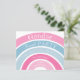 A cute Gender Reveal Party invitation. The design consists of a rainbow in shades of blue and pink, with patterns including spots, stripes and tear drops. Each line is annotated with typography text detailing the party. Personalize by adding your full event details.