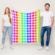 This modern colorful fleece blanket features a white houndstooth geometric pattern over a rainbow gradient background.