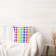 This colorful throw pillow features a white geometric houndstooth pattern over a rainbow gradient background.