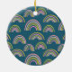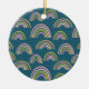 Modern Rainbow Pattern Design in Teal Blue Holiday Ceramic Ornament