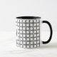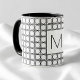 Modern Rattan Pattern Chic Black Initial Monogram Mug design features a structured repeating lattice of outlined circles paired with a centered initial for a clean and modern look. The balanced rattan-style pattern creates a refined, graphic aesthetic while the single-letter monogram adds a personalized focal point. The combination of circular pattern elements and minimalist typography gives the design a timeless, sophisticated style with a modern monochrome finish.