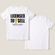 This stylish, custom t-shirt features the bold phrase “Licensed To Sell” customizable with your name or real estate name making it a perfect conversation starter. This shirt is professional, and designed to boost your visibility, it’s the ideal way to promote your brand and invite engagement at every showing. This t-shirt is a part of a real estate collection with coordinating items available.
