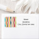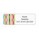These return address labels have a mid-century modern design of vertical lines of rounded rectangles in increasing and decreasing size in retro colors of red, green, blue, yellow, orange, and brown on a field of white.