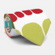 This necktie has a mid-century modern design of horizontal lines of rounded rectangles in increasing and decreasing size in retro colors of red, green, blue, yellow, orange, and brown on a field of white.