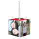 Modern Red 4 Photo Snowflake Christmas Cube Ornament