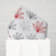 Pretty and modern floral pattern features 5 leaf plant / flower illustrations in red and gray on white background.