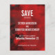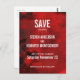 A wedding save the date postcard with a modern abstract pattern. Red and black colors swirl, mix and mingle together. Creative, artistic and unique with a dark, mysterious flair.