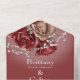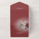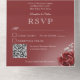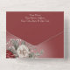 AVAILABLE WITH OR WITHOUT A QR CODE TO SCAN IN THE RSVP AREA. This design features red, tan, and brown floral rose bouquets on a dark red background. Add a QR code to your invitation so that gusts can quickly access your wedding Website for details, directions, menu options, and more, or add your gift registry Web URL. Personalized All-In-One invitations are a unique combination of both a beautifully printed custom invitation with an easy to tear off perforated RSVP postcard. And they are so easy to use! You simply fold, then seal the back flap with the three included clear stickers, and mail. And when your guests receive your custom invite, they just tear the perforated RSVP Card off and drop it back in the mail to you!