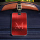 Modern Red Brushed Metal Foil Script Monogram Glam Luggage Tag