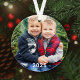Photo ornament design for the holidays features your favorite image with year text in white (can be customized) with red and black buffalo plaid pattern on the back. Personalize the custom "Merry Christmas" text on the back or remove. Photo tip: crop photo to square format before uploading it to the design template. Photo credit: Two Fish Photography www.twofishphoto.com