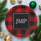 Modern Red Buffalo Plaid Personal Initial Paper Plates