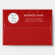 Modern minimalist return address envelopes for business Christmas cards featuring sparkly red background image and personalized company logo.