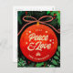 Design is composed of a red Christmas ornament on a dark background. Add your family's name, year, and custom message.