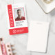 A modern red id badge for firefighters. The design features the fire departments name and phone number. It shows a well sized firefighter id photo. Information can be personalized and so far includes the firefighter's name, ID number, as well as date issued and the expiry date. A bar on the left side shows the firefighter's designation (e.g. FIREFIGHTER). Would also work for other fire department employees. All elements can be personalized in color to suit your needs.