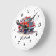 Modern Red Fire Truck Personalized Name Round Clock