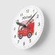 Modern Red Fire Truck Personalized Name Round Clock
