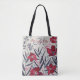 Modern Red Floral Monogram Tote Bag