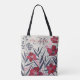 This personalized floral tote bag features a bold and elegant botanical design with vibrant red flowers, soft pink accents, and muted blue foliage. Set against a light background, the artwork creates a modern yet timeless look, perfect for everyday use. Finished with a custom name in a stylish script font, this tote adds a personal touch while staying effortlessly chic. Ideal for shopping, work, or gifting, it’s both practical and beautifully unique.