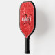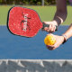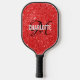 Modern red glitter black script monogram white name women's pickl ball paddle. Personalize with your name.