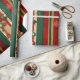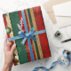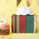 Christmas Wrapping Striped Paper in green burgundy and gold lined with holiday tree ornaments