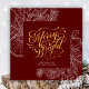 Modern Red Gold Script Pine Bough Floral Simple Holiday Card. Send customizable and personalized holiday greetings to friends, colleagues and family with this modern and elegant non-photo design festive, natural minimalist style cards! A beautiful gold floral greenery foliage with citrus, cinnamon, Christmas bells, holly and pine tree leaf line art frame surrounding holiday greetings of " Merry and Bright " in elegant calligraphy. On the bottom, features your custom greeting message from your family name in modern typography