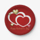 Modern Red Gold Valentine Hearts Paper Plates