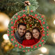 Modern Red & Green Personalized Floral Photo Ceramic Ornament