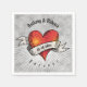 This napkin features a tattoo style heart colored with an orange and red fractal design. The heart is adorned with a ribbon banner. There are two names above and a date on the banner for you to personalize. Text below reads "Forever". Perfect for a Valentine's Day Party!